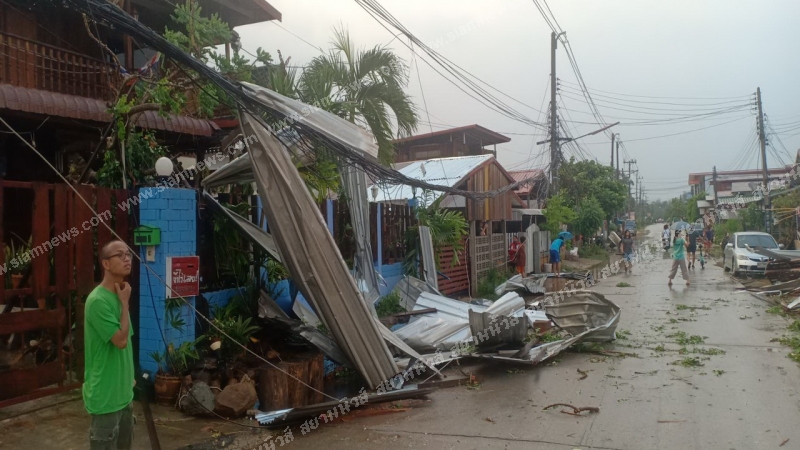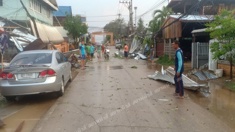 ถนนคนเดิน ไม้บ้านเก่า ลานวัฒนธรรม พบว่าพายุฝนและลูกเห็บพัดถล่มบ้านเรือน ร้านค้า จนหลังคาเปิงหายไป เก้าอี้ ถูกลมพัดลอยกระเด็น มีเรือนักท่องเที่ยวที่จอดอยู่ริมแม่น้ำโขงถูกพายุพัดจนพลิกคว่ำ โชคดีไม่มีใครเป็นอะไร