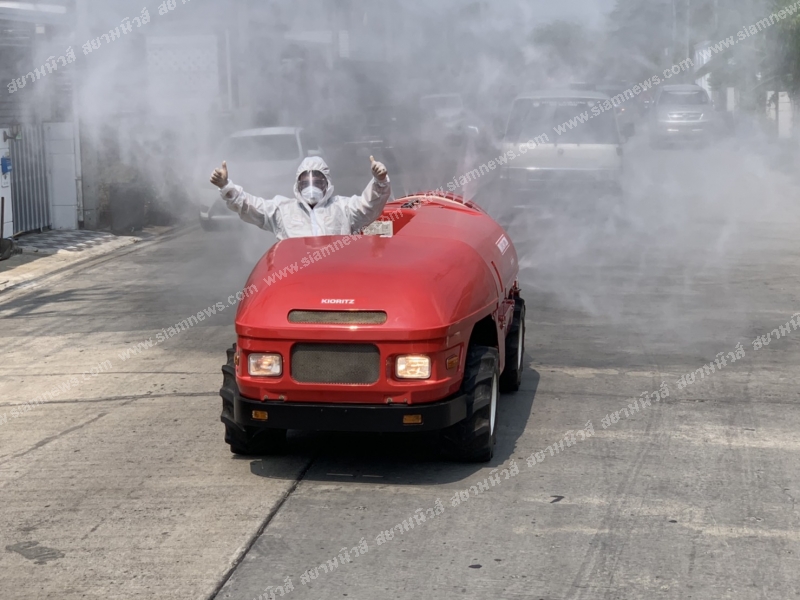 วันที่ 3 เมษายน 63 ผู้สื่อข่าวรายงานว่าจากกรณีที่พบผู้เสียชีวิตจากไวรัสโควิ-19 ภายในหมู่บ้านชื่อดังแห่งหนึ่งในตำบลคลองสาม อำเภอคลองหลวง จังหวัดปทุมธานี นั้น โดยล่าสุดในวันนี้ทาง อบต.คลองสาม โดย ผศ.(พิเศษ)ดร.วิระศักดิ์ ฮาดดา นายก อบต.คลองสาม พร้อมด้วย เจ้าหน้าที่กองงานสาธารณสุขและสิ่งแวดล้อม ลงพื้นที่ออกฉีดพ่นยาฆ่าเชื้อเพื่อป้องกันเชื้อไวรัสโควิด-19 ภายหมู่บ้านดังกล่าวที่พบผู้เสียชีวิตจากไวรัสโควิด-19