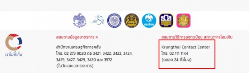 เบอร์โทรสอบถามการลงะเบียน สถานะการโอนเงิน