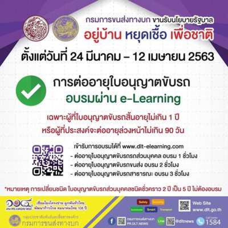 ทั้งนี้ กรมการขนส่งทางบกได้เปิดระบบการอบรมต่ออายุใบอนุญาตขับรถหรือใบขับขี่ผ่านทางเว็บไซต์ออนไลน์ เพื่อหลีกเลี่ยงและป้องกันการแพร่ของ CD19 ตามนโยบาย ของรัฐเพื่อชาติ แต่ก็ยังสามารถอำนวยความสะดวกให้กับประชาชนที่มีใบขับขี่และหมดอายุในช่วงเวลานี้ ได้สามารถต่ออายุผ่านทางออนไลน์ด้วยตนเอง โดยมีขั้นตอนต่าง ๆ ดังต่อไปนี้
